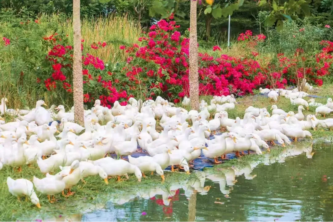 湾坡鸭因独一无二的天然温泉和生态环境孕育出了独特的品种,其泡的是温泉水,吃的是天然稻米和野生小鱼虾,具有羽毛洁白、生长周期长、个头大、体格健壮、肉质鲜美无杂质等优良品质,可以直接白切食用而没有鸭腥味,是绝佳的天然绿色食材。