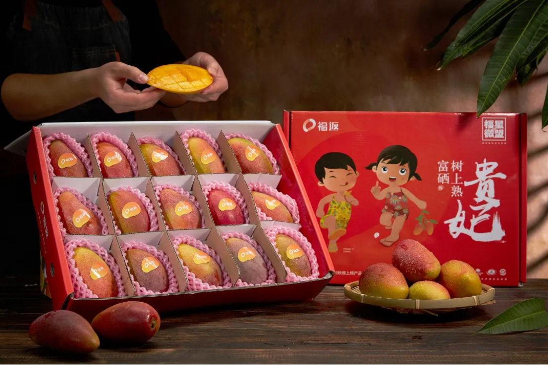 崖州贵妃芒果:崖州贵妃芒果,外表美艳、肉厚核薄、果汁丰富、口感细腻、香甜爽口。