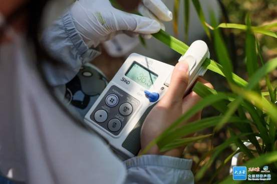科研人员正在田间测定实验材料的叶绿素含量,通过科技手段精准掌握作物长势,助力良种繁育。