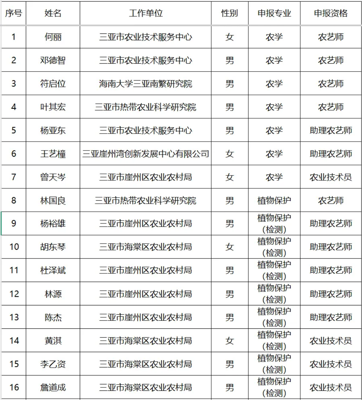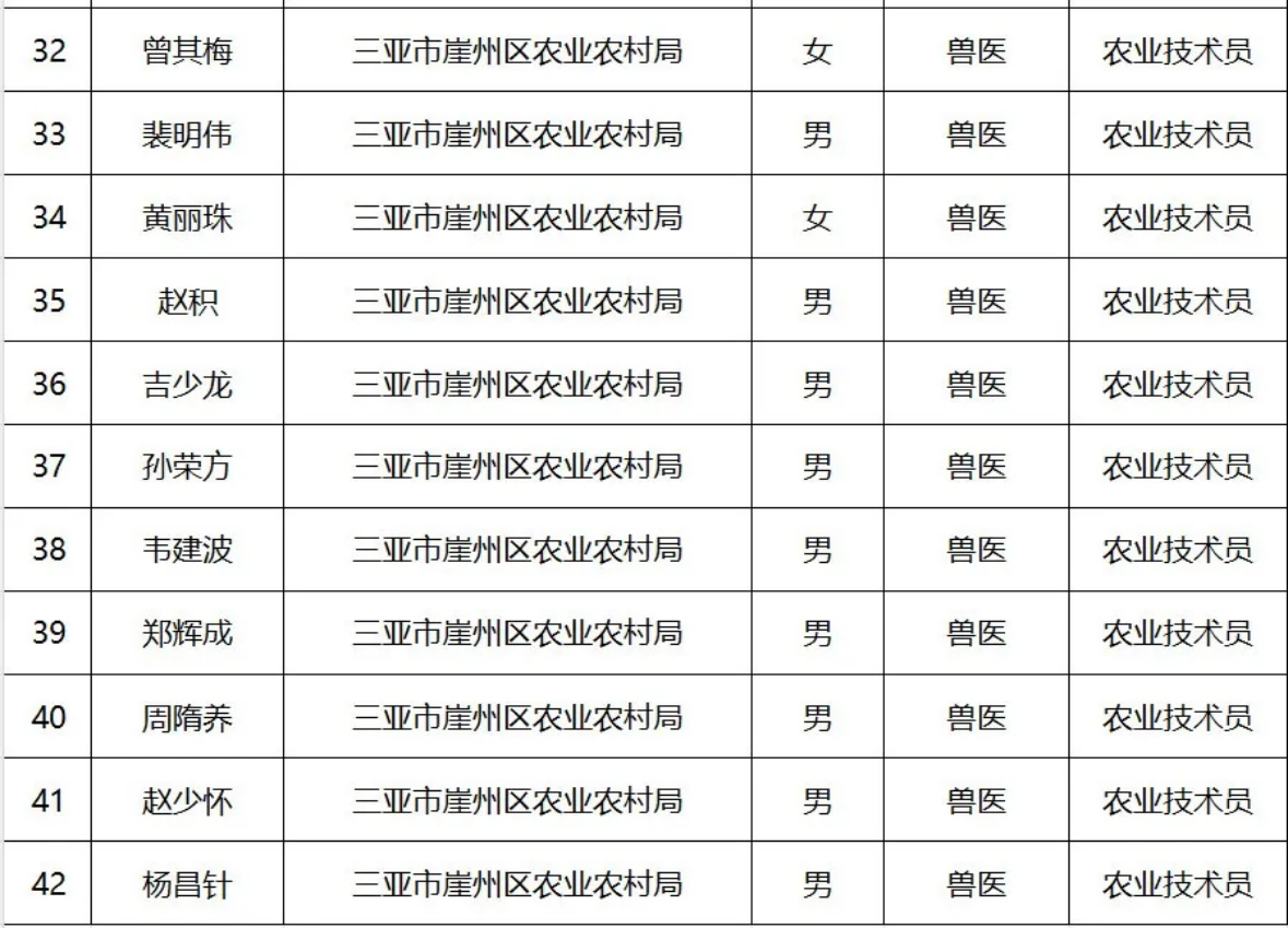 2025年度三亚市农业专业技术人员职称评审通过人员名单