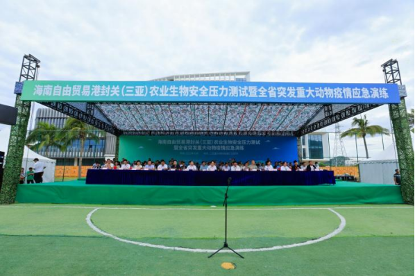 为落实党中央、国务院关于海南自贸港封关运作农业生物安全决策部署,扎实推进“人病兽防、关口前移”,10月31日,我省在三亚市崖州区成功举办海南自由贸易港封关(三亚)农业生物安全压力测试暨全省突发重大动物疫情应急演练,旨在全面检验和提升海南省应对生物安全突发事件的应急处置能力,为海南自由贸易港全岛封关运作提供坚实的安全保障。