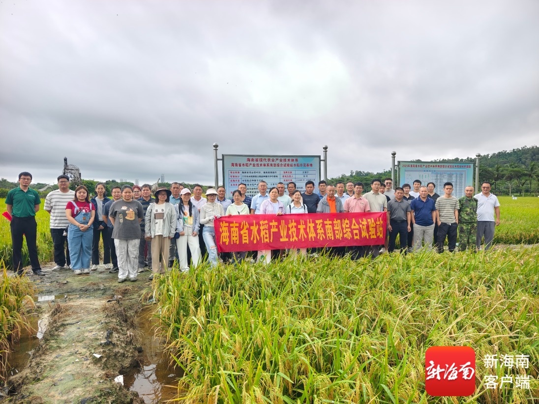 南海网、新海南客户端11月4日消息(记者 利声富)海风吹拂,稻浪翻滚。三亚市水稻国家公园品种展示评价基地,一片片饱满的稻穗随风轻摆,丰收气息扑面而来。11月4日,一场特别的“田间擂台赛”——2025年海南省水稻产业技术体系南部综合试验站水稻观摩会在此举行。通过专家田间鉴评、代表集中观摩与深入技术交流,科学筛选与推介一批适宜海南南部市县种植的优质高产水稻新品种,为粮食稳产增产和农业现代化发展注入强劲科技动力。