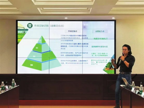 作为水蛟村的竞聘者之一,段治桥以市场痛点为切口,借助“市场空缺识别金字塔”模型,梳理出三亚机场直达型乡村慢旅目的地稀缺、乡村旅居型社区供给不足等四大发展短板。在此基础上,他提出“乡村振兴2.0发展”思路,规划打造乡村候机厅、温泉康养村居、亲子自然教育基地,还计划通过数字化手段发展庭院经济,让乡村资源从“守株待兔”转向“主动引流”。