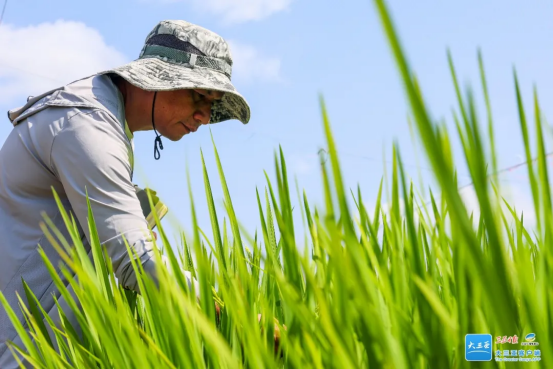 3月18日,在前哨队新品种试验基地,科研人员正在查看水稻长势。
