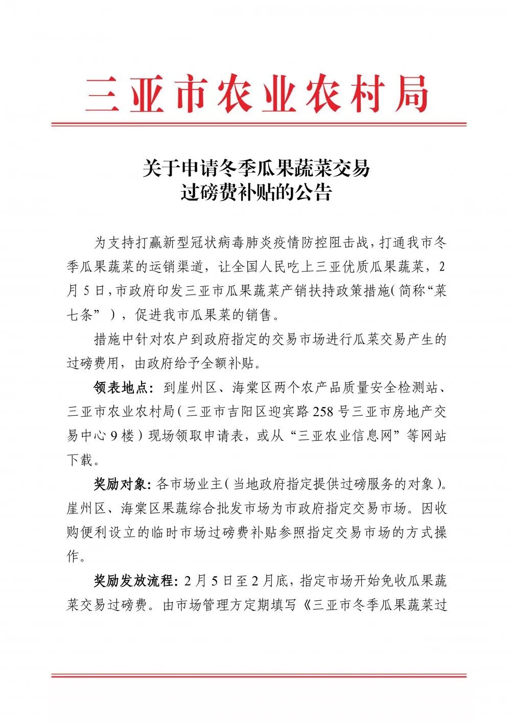 关于申请冬季瓜果蔬菜交易过磅费补贴的公告