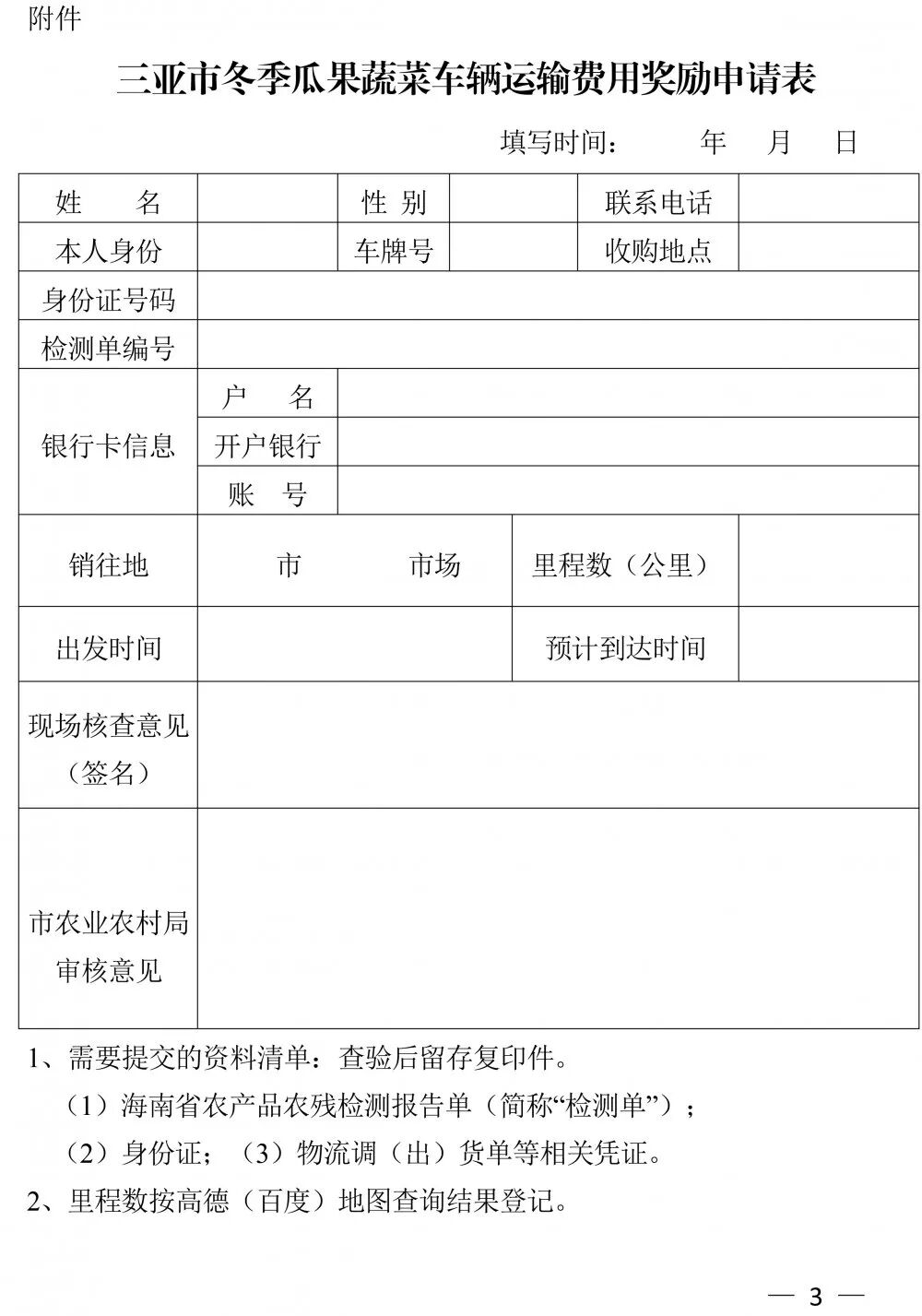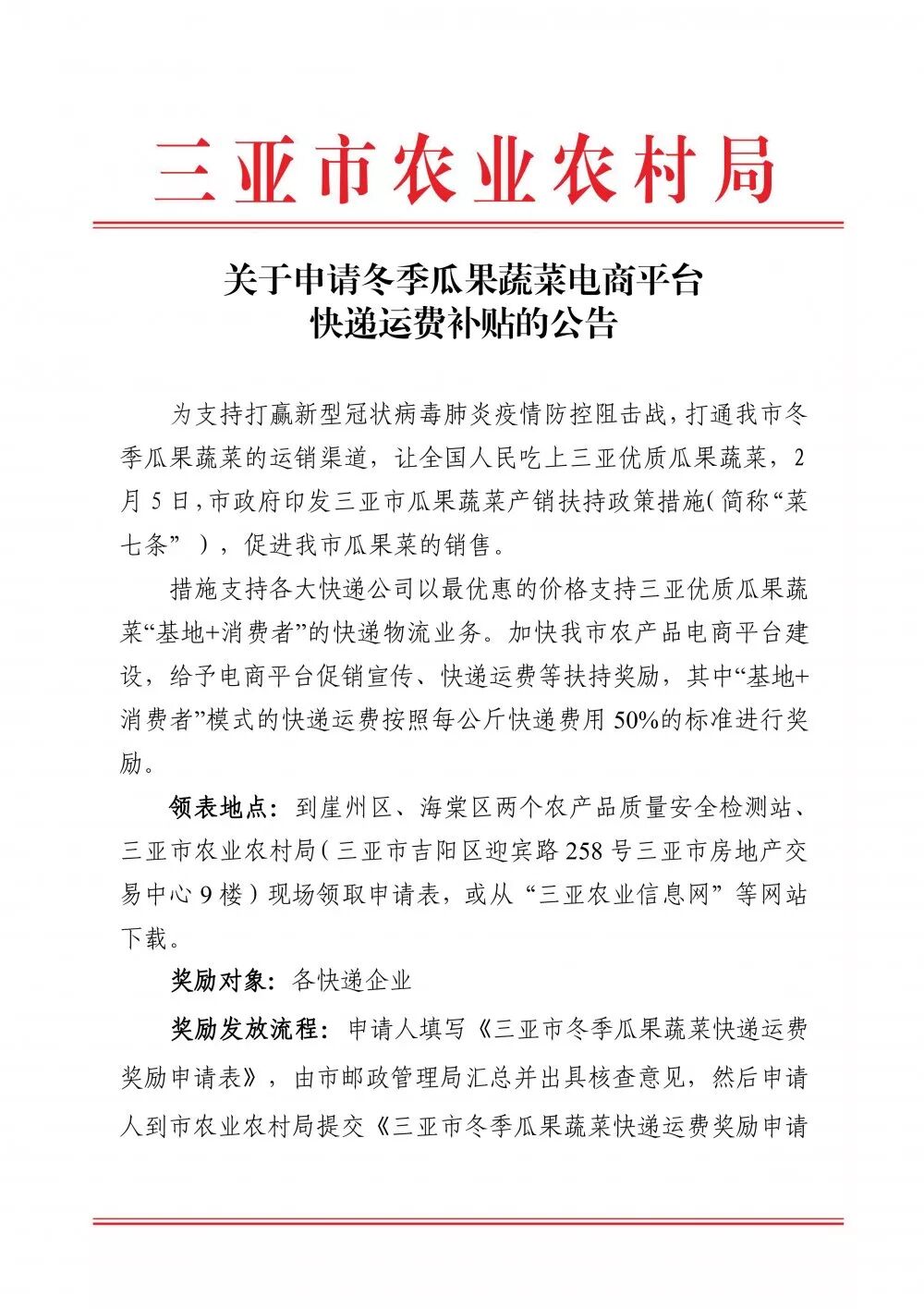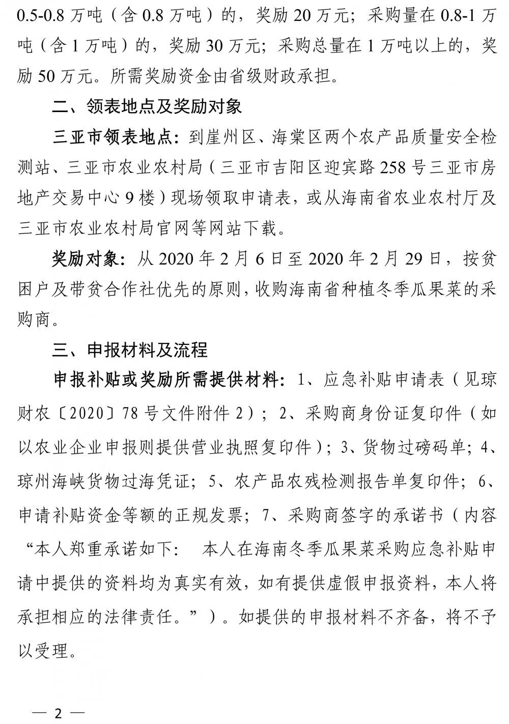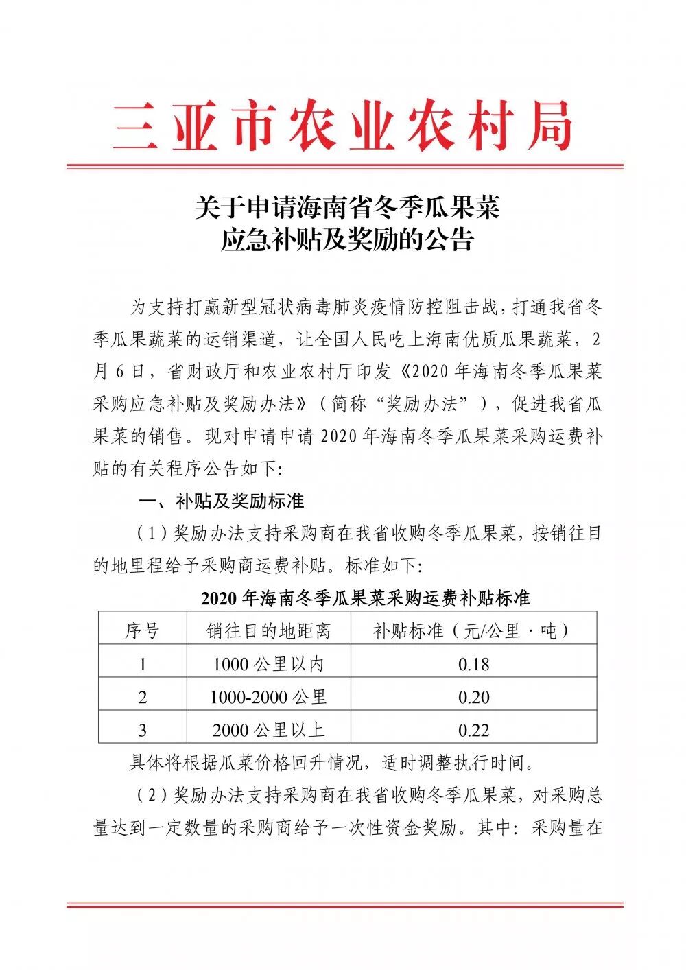关于申请海南省冬季瓜果菜应急补贴及奖励的公告
